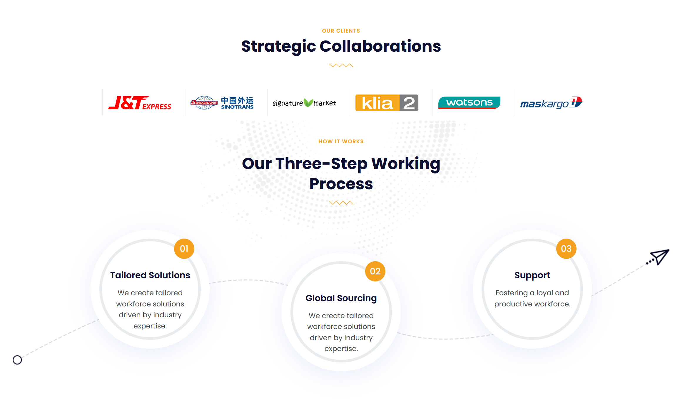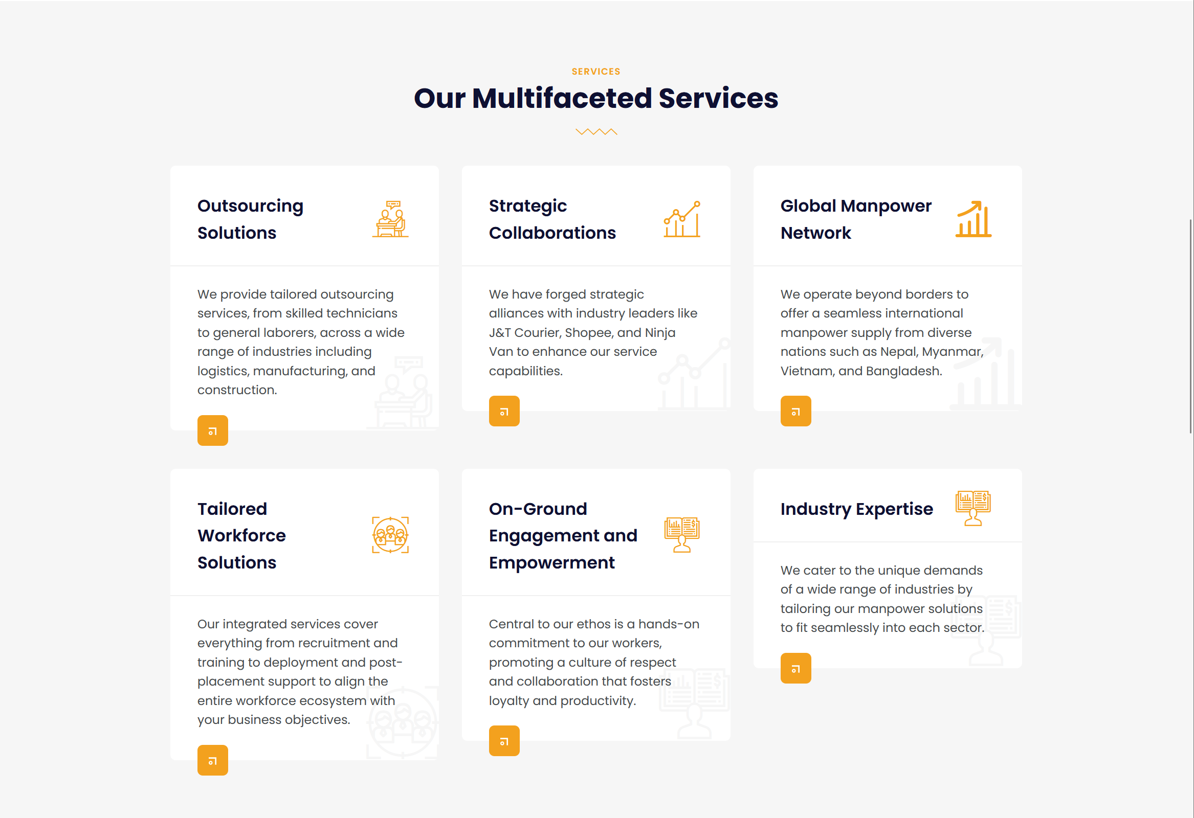 Service Segmentation: The services were categorized clearly—such as Outsourcing Solutions, Strategic Collaborations, and Global Manpower Network—making it easier for clients to understand and explore.